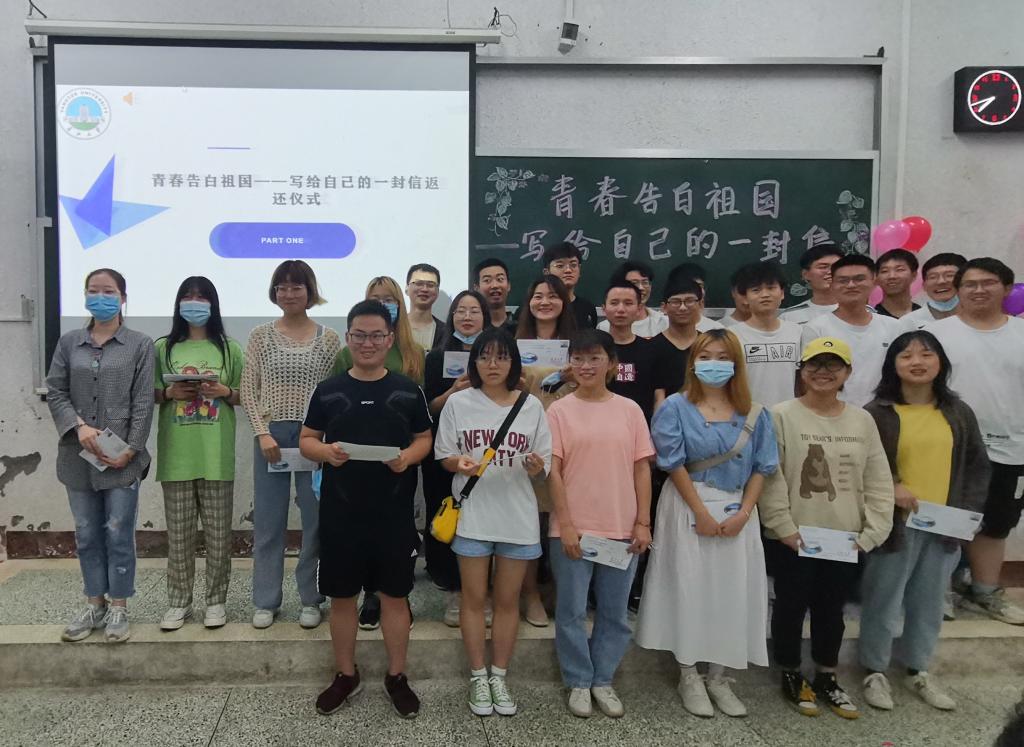 组织2019级本科生在5教103教室举行“青春告白祖国——写给自己的一封信”返还仪式,院团委书记范昆琨、研究生辅导员顾志翔参加此次活动,兼职辅导员段奥主持活动。