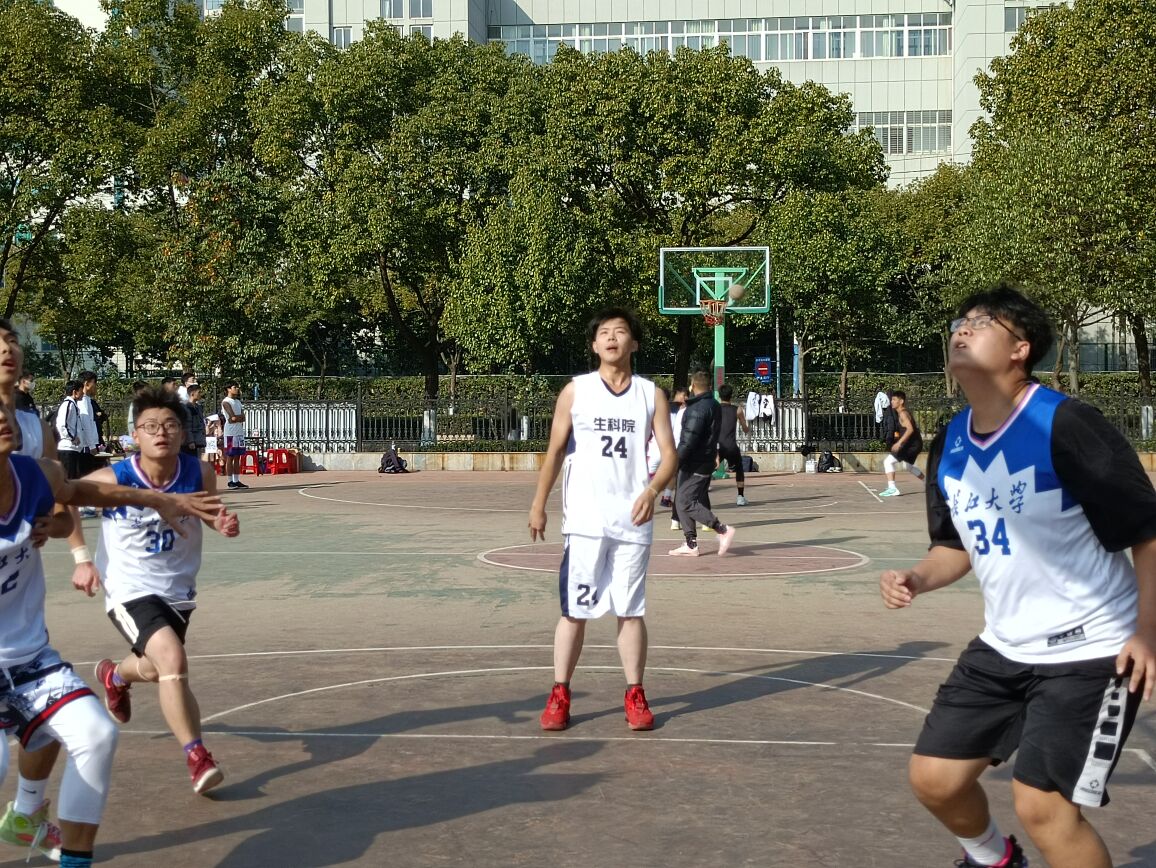 “新生杯”篮球赛是专门为大一新生以及研究生新生举办的赛事,此赛事已举办20个赛季,通过几轮淘汰制来争夺此项赛事的桂冠。赛前,双方队员派出代表猜拳决定发球顺序。哨声响起,现场的氛围逐步攀升,狭路相逢勇者胜,比赛双方很快进入了激烈的角逐。运球、传球、假动作、三步上篮……各位选手勇于拼搏,动作帅气利落,一次次的成功投球赢得了场上观众们热烈的掌声,喝彩声一波又一波。同时场下啦啦队更是热情高涨,呐喊助威,气氛十分活跃。比赛结束后,双方队友握手拥抱,充分展现了“友谊第一,比赛第二”的体育精神。