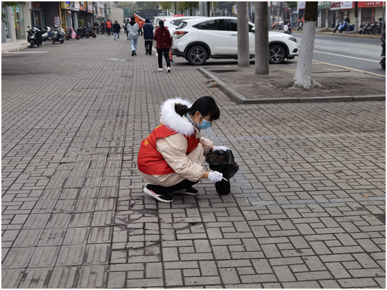 校门口集合,各自领取了马甲和手套、筷子、垃圾袋等清洁工具。划分组别和区域后,志愿者们来到了各自负责的区域,热情满满地展开了志愿服务工作。志愿者们开始清理街道,认真清扫草坪中和道路上的烟头、瓶盖、纸片和烧烤竹签等垃圾;下过雨后湿润的地面使得部分垃圾不易拾起,志愿者们果断放弃工具,用手去捡起垃圾;当看到自行车东倒西歪时,他们毫不犹豫上前将其罗列整齐,热心市民也会在一旁帮助志愿者并对志愿者们的工作表示肯定和鼓励。志愿者们在看到车主违章停车后,会及时地追上前去,文明礼貌地对车主违章停车的行为进行劝阻,车主也十分配合,知悉后便驾车离开。每一位志愿者在岗时都十分敬业,他们用自己的努力让街道变得更加干净整洁,让城市秩序变得更加有序。