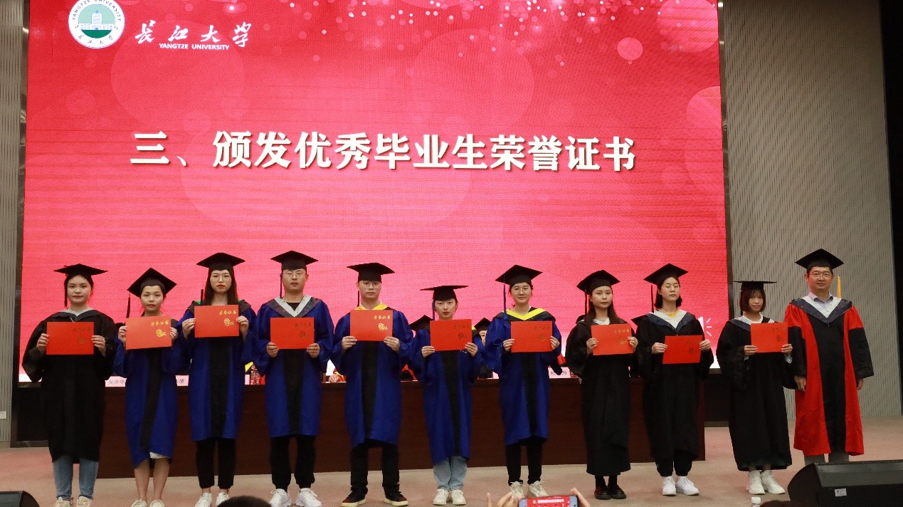 “起来,不愿做奴隶的人们……”,毕业典礼在庄严的国歌声中拉开帷幕。随后蔡哲斌教授宣读了学院关于表彰优秀毕业生的文件,受表彰的毕业生逐一登台领奖。