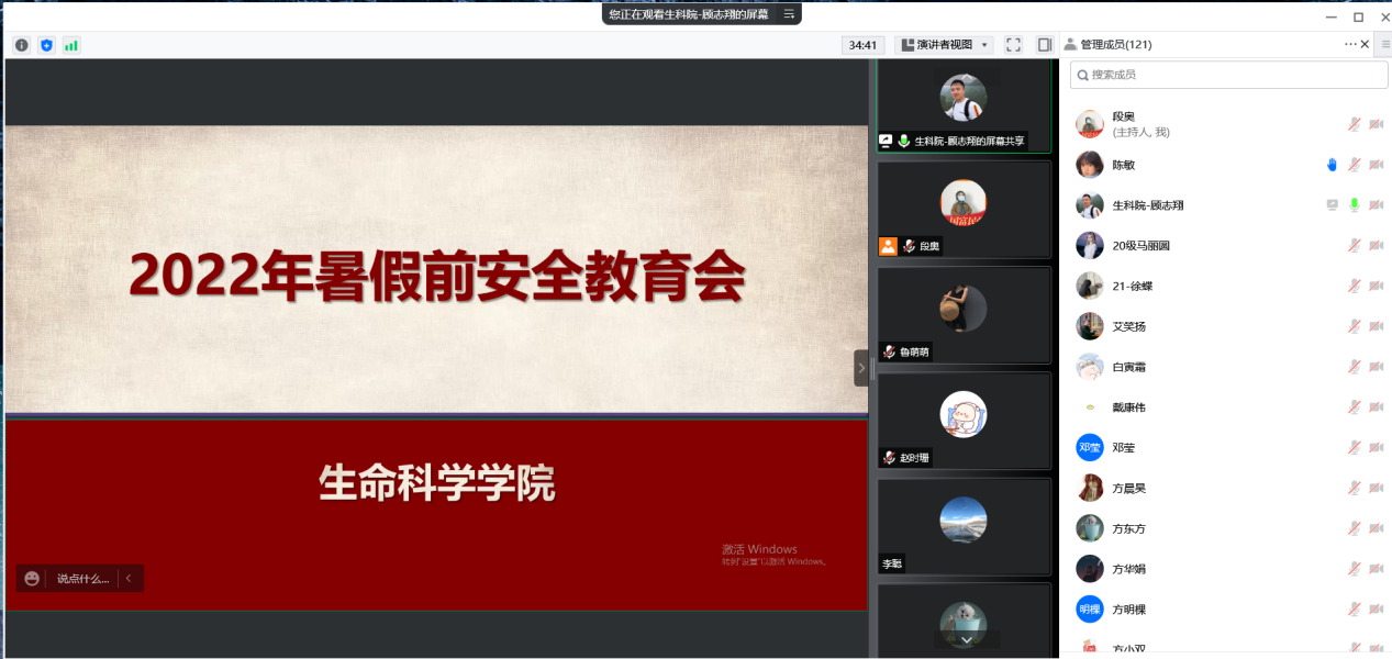 于2022年7月1日召开了2022年研究生暑假前安全教育会议。本次会议由研究生辅导员顾志翔主持,全体在籍研究生参加。