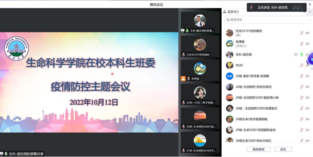 于10月12日晚9:00召开疫情防控工作会议,学院党委副书记汪萍老师、辅导员顾志翔老师以及全体本科生学生干部参加本次会议。