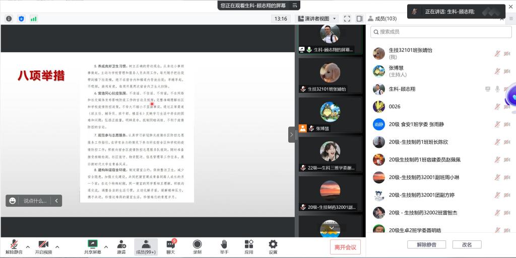 本次会议主要从关注防疫政策、学习学校文件、落实防疫责任三方面展开。会议中,由顾志翔老师带领各位学干共同学习“长大学子勇担抗疫责任八项举措” 、《致韩国av