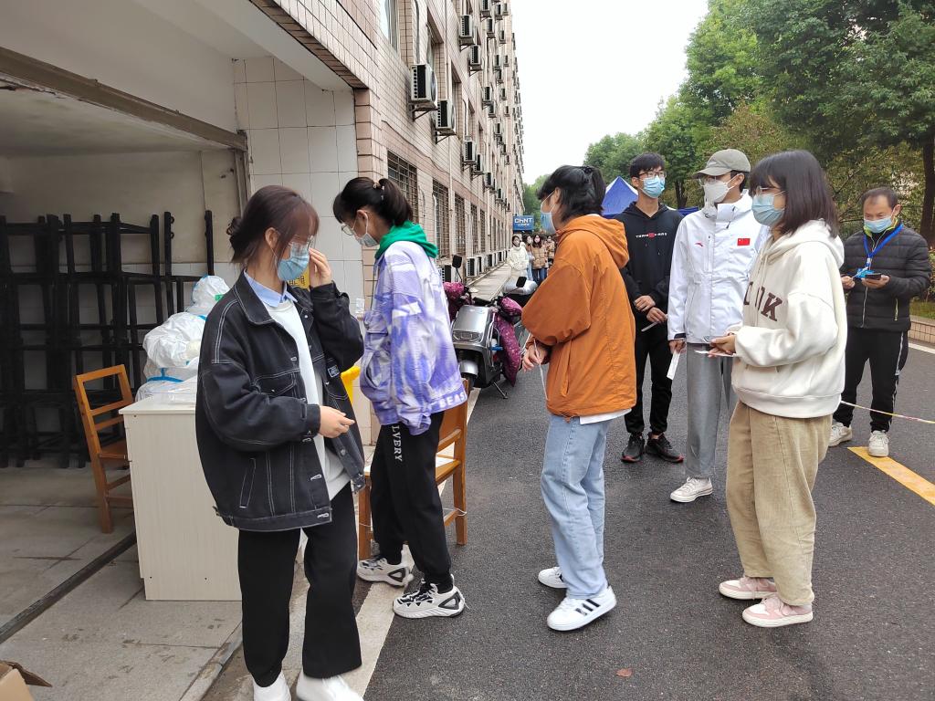 “打扰一下,宿舍有几位同学在,全员核酸检测都做完了吗?”各楼栋长、楼层长逐一敲门落实核酸情况。“纵使身体有些疲惫,但心里一直有那股劲儿,想着身为党员,更要服务大家,做抗击疫情的主力军。”带着这样的信念,志愿者们毅然坚守在各自岗位上。