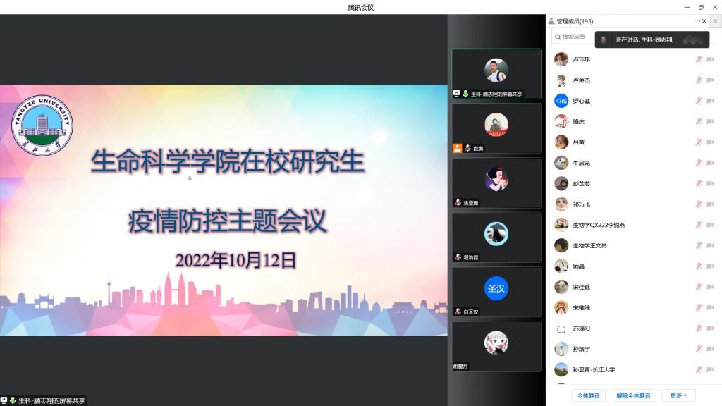 于2022年10月12日晚上召开了在校研究生疫情防控主题班会。本次会议由研究生辅导员顾志翔主持,韩国av