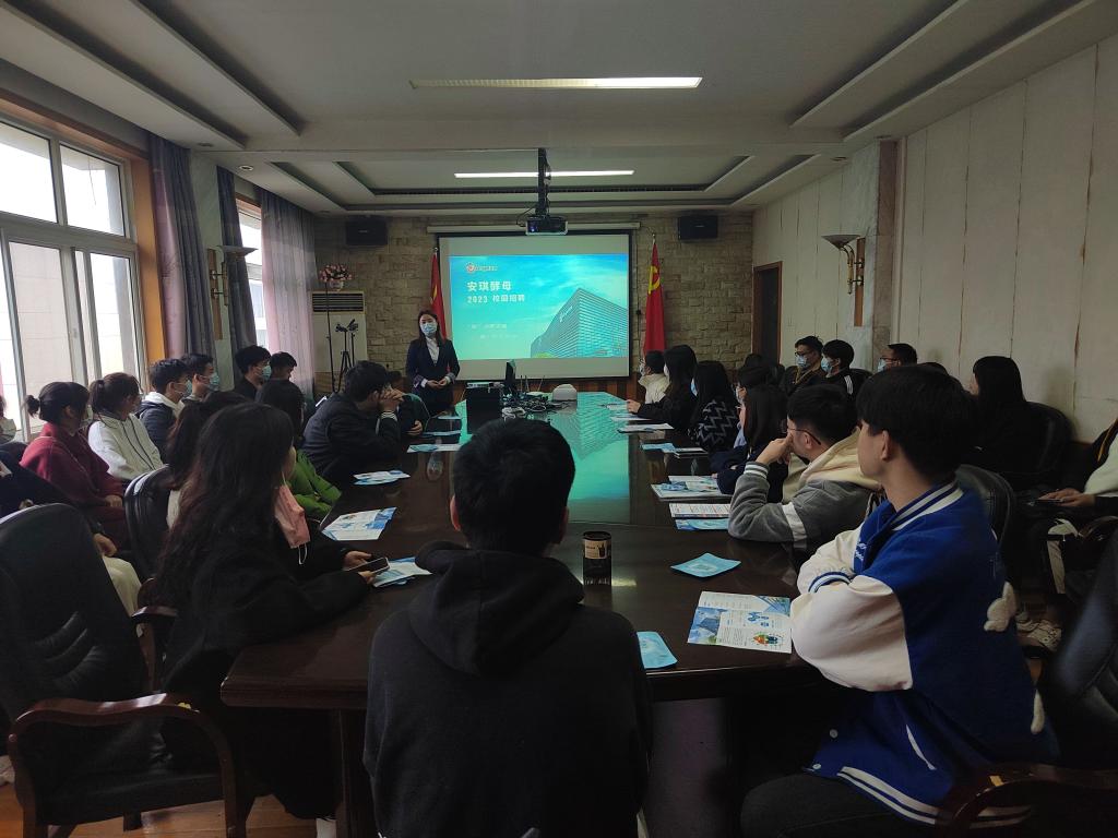 宜昌安琪集团成立于1986年,是研究天然酵母,并进行规模化制造的专业化公司,酵母产业化水平在国内处于领先地位,是酵母行业唯一的高科技上市公司。宣讲会伊始,负责人采用PPT放映的方式全方面展示了公司的人文理念,基础设施,福利待遇,公司风貌等一系列条件,并在放映PPT同时随机提问,给参会的同学们送出该公司精心准备的小礼品,也提出了对于招聘人才的要求。会议中,参会人员就入职后的培养方案等提出了一系列问题,负责人一一进行了解答。