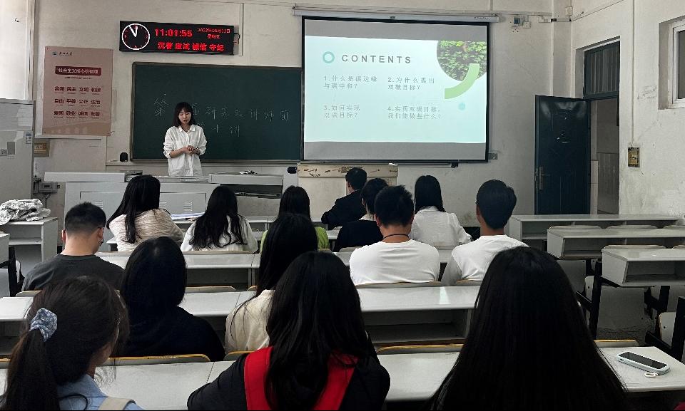 第四届研究生讲师团于5月12日在西校区七教106教室开展第十场专题宣讲活动。讲师团成员翟璐作题为《碳达峰与碳中和——关爱环境,尊重自然》的宣讲,韩国av