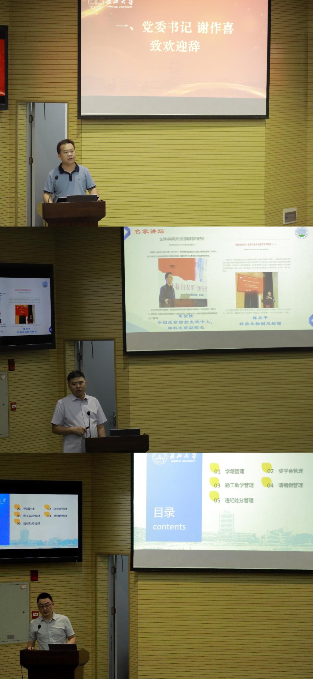 2023级新生家长见面会在西校区农科大楼报告厅1056隆重举行。本次活动由学院党委副书记万波主持,学院全体院领导、系主任、新生班主任、辅导员出席了此次家长见面会。