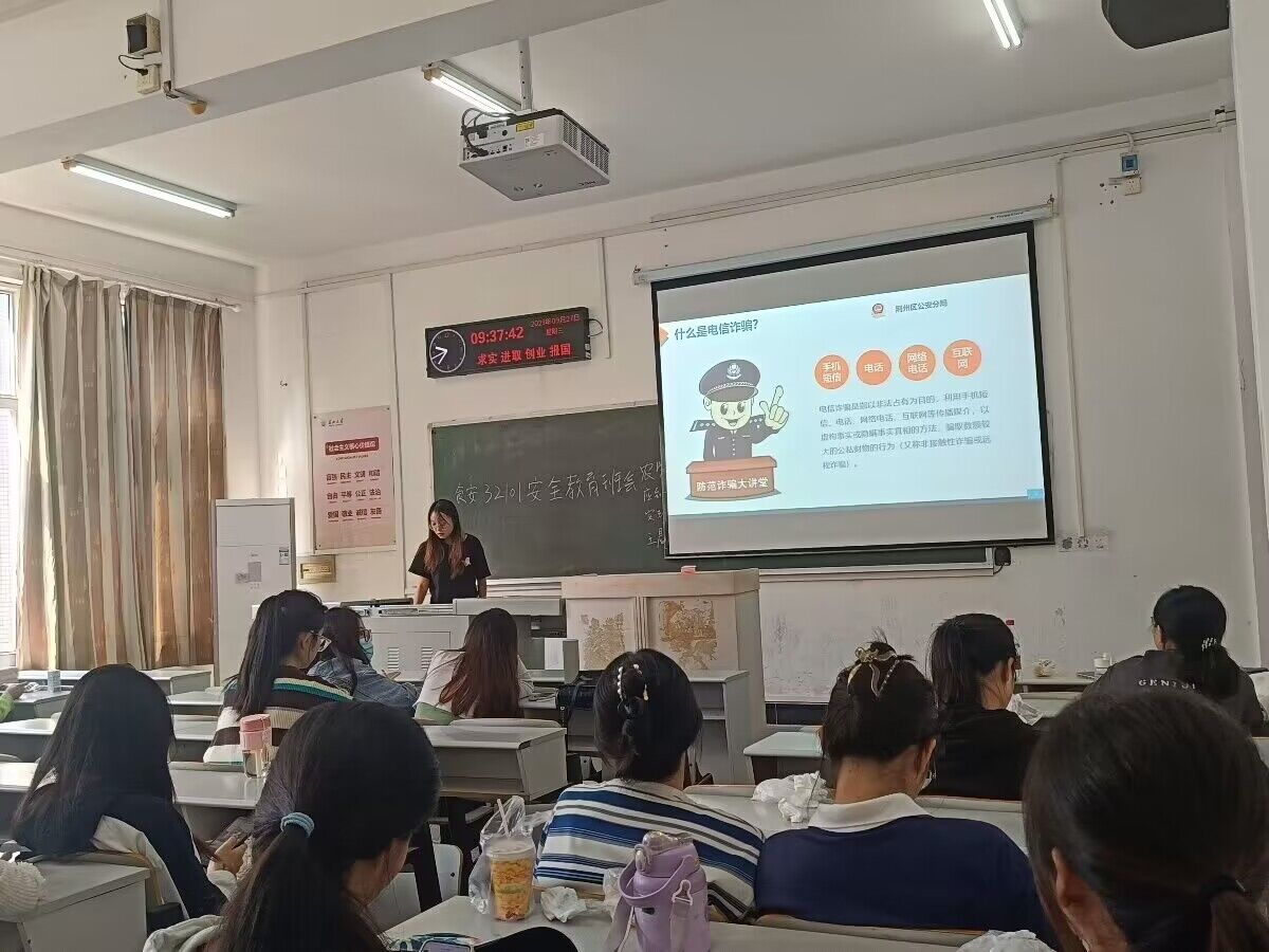 此次活动由各班负责人开展,通过PPT开会讲解的方式,用实事案例向同学们介绍了多种高风险诈骗形式,着重讲解诈骗典型手法以及应对措施,呼吁同学们保护好个人信息的同时,也注意保护好自己的财产安全,在日常生活中不轻信、不盲目、不转账,让不法分子无可乘之机。