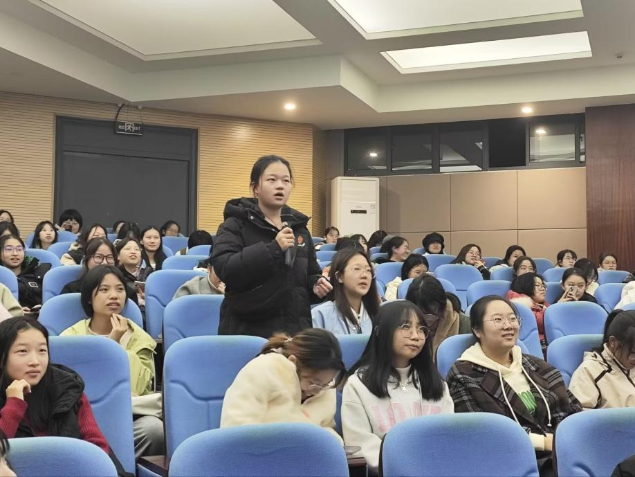 于农科大楼1056报告厅举办女生讲座,2023级全体女生参加,学生心理健康教育中心王娟老师主讲。