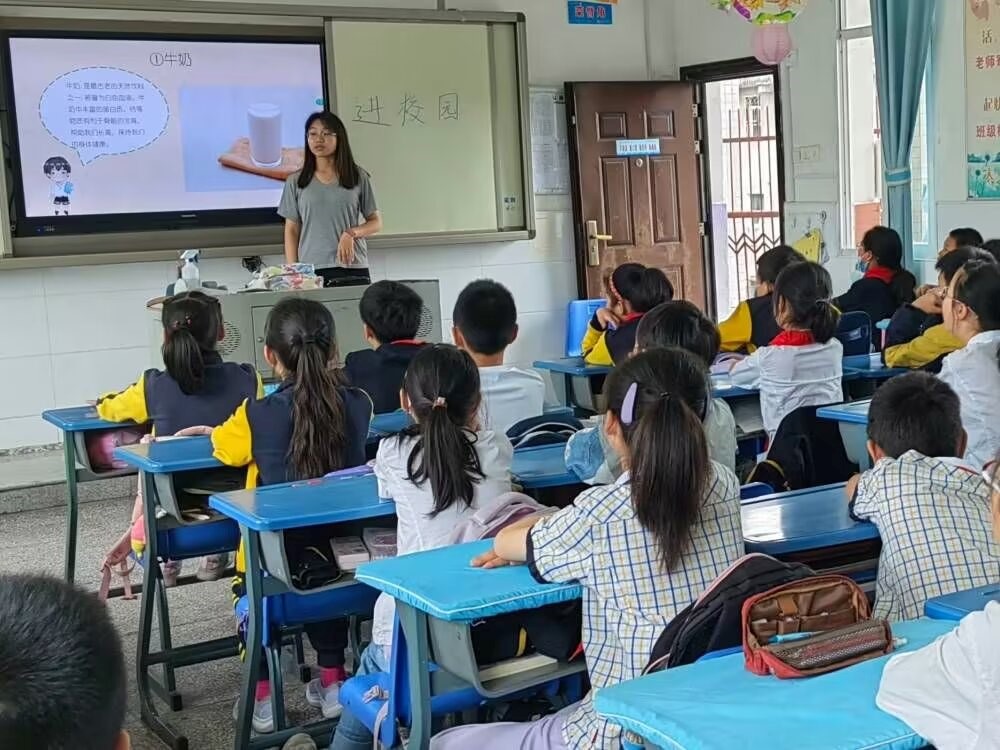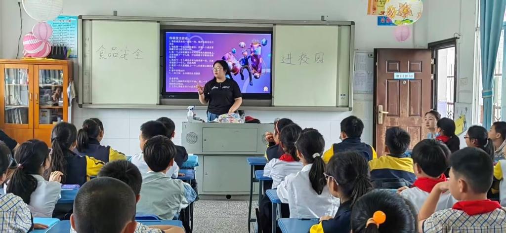 本次活动主要以志愿者借助ppt宣讲以及组织游戏的方式展开。活动过程中,一张张美食图片很快吸引了小朋友们的注意力,志愿者们便趁机提醒小朋友们有些美食外表光鲜艳丽,其内在蕴含有害物质,需要减少摄入量。与此同时,志愿者们积极的与小朋友们进行互动,时不时地询问他们爱吃的零食和蔬菜等等。为加强小朋友们对食品安全知识的记忆,志愿者们还准备了部分问答题目,小朋友们争先恐后地举手回答问题,整个课堂充满着活力。除了问答互动,在游戏互动中,小朋友们也和志愿者们相处的十分融洽。志愿者们陪伴着小朋友完成了“你画我猜”的小游戏。游戏过程中孩子们“大显身手”,绽放属于他们的活泼。下课之前,志愿者为小朋友们分发礼物。活动结束后,志愿者和师生一起在学校门口合影留念。