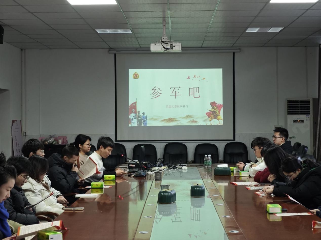 于2023年12月19日中午12点半在西区1教217会议室开展了征兵宣讲活动。本次宣讲由学院征兵就业专干章崇烁老师,退役士兵大学生窦笑爽、陈翔、徐啸宇及各班级代表出席本次宣讲活动。