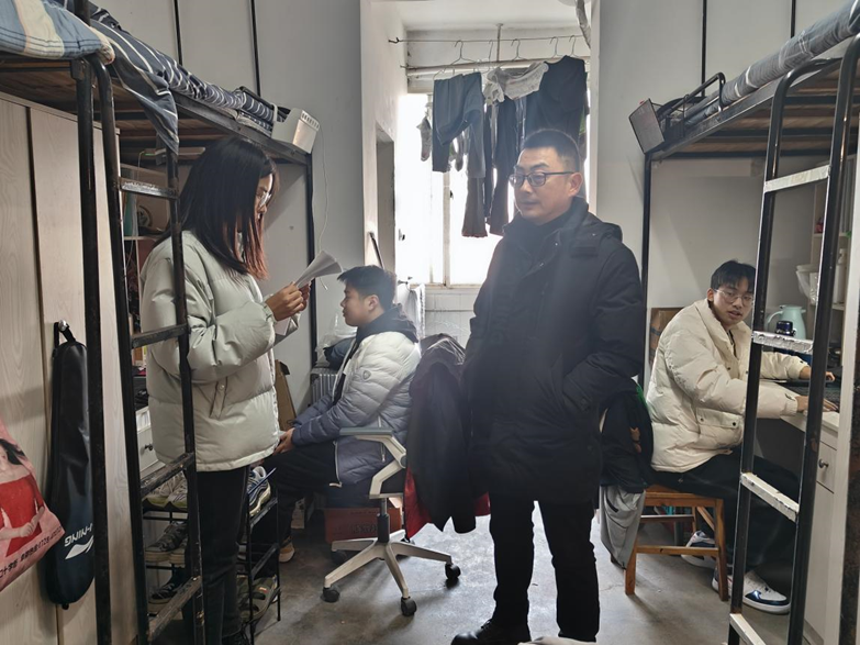 各位班主任通过进寝室强调消防安全常识、消防应急技能、宿舍用电安全之外,同时也深入了解同学生活学习状态,特别是即将参加研究生考试的大四学生,班主任与同学们深入交流,鼓舞学生认真备考、参考。
