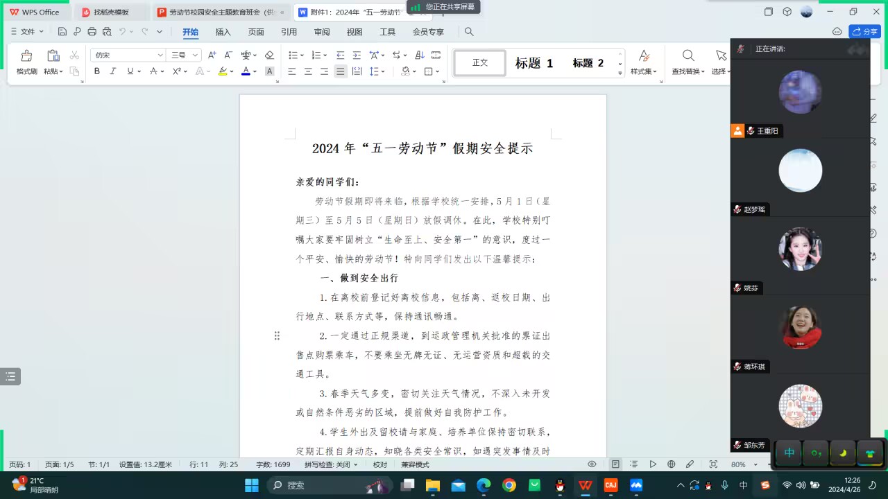 通过此次安全教育班会,同学们深刻认识到了安全的重要性,表示将牢记安全知识,增强自我防护能力,确保度过一个平安、愉快的“五一”假期。同时,学院也将继续加强安全教育工作,为广大学生营造一个安全、稳定、和谐的校园环境。