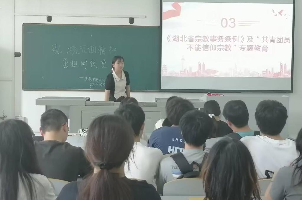 各团支部通过观看《学习监察法,争做廉洁人》专家视频讲座、学习《2018版中华人民共和国监察法学习解读》和《中国共产党纪律处分条例》等文件,引导广大青年树立诚信廉洁意识,做到学纪、知纪、明纪、守纪。各团支部还认真学习《湖北省宗教事务条例》,扎实开展“共青团员不能信仰宗教”专题教育。