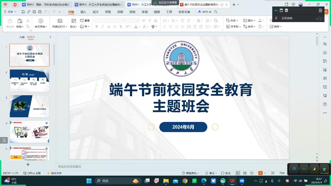 (通讯员 章崇烁)为提升学院学生安全意识,加强自我防范能力,韩国av 各班级近日开展了安全主题教育活动。活动强调了离校、返校、交通、防溺水、反诈骗等多方面的安全事项,并通过微视频、案例分享等形式,深化学生理解。同时,随着四六级考试的临近,班会还特别强调了诚信考试的重要性,呼吁同学们遵守考试纪律,杜绝作弊行为。此次活动旨在筑牢安全防线,倡导诚信风尚,为学生营造安全、和谐的校园环境,助力其健康成长。 (审核 万波)