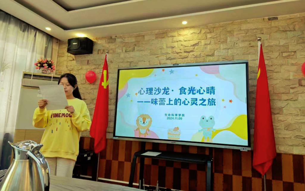 (通讯员 朱翠玲)味悦心舒,食悦情畅。11月9日下午2点,学院在行政楼323举办了一期以“食光心晴——味蕾上的心灵之旅”为主题的心理沙龙。辅导员朱翠玲老师及30多名学生代表参加本次活动。
