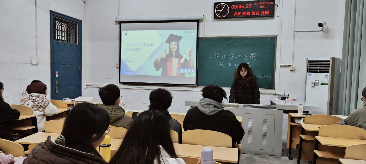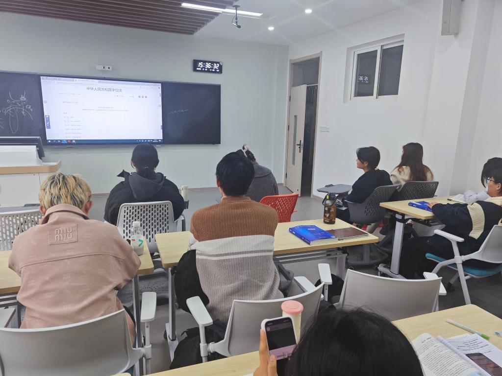 活动期间,各班级以主题班会形式,生动普及学位申请规范,引导学生树立学术自律意识,围绕《学位法》的立法背景、核心条款及实践要求展开专题学习。共同助力推动形成“敬畏学术、追求卓越”的院风学风。