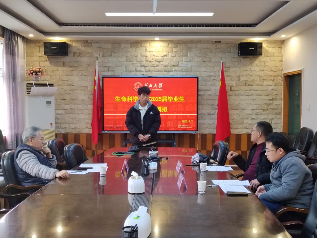 在行政楼323会议室举办2025届毕业生考研复试模拟活动。本次活动通过全流程实战演练,帮助考研学子提升应试能力。高梦祥、熊涛、赵福永、杨华林、尹小丽、马静、范凯等7位老师担任评委。