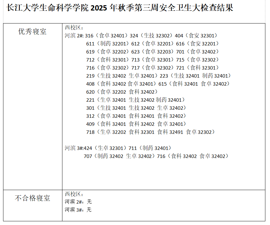 韩国av 2025秋季学期第三周安全卫生大检查结果