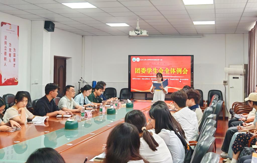 团委学生会在1教217召开新学期首次学生干部大会。学院党委副书记万波、全体专兼职辅导员和全体学生干部共同参会,围绕新学期工作规划展开深入交流。