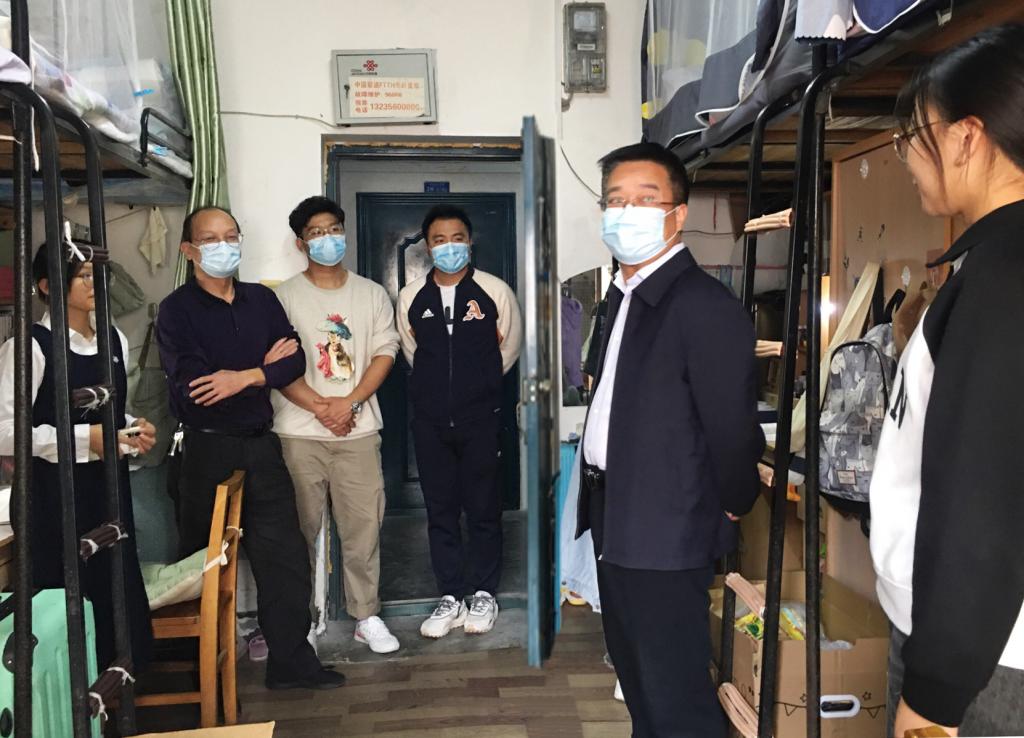 学生宿舍慰问看望学生,学院院长高梦祥及相关人员一同走访,与学生面对面交流,帮助解决学生在学习和生活中遇到的困难。