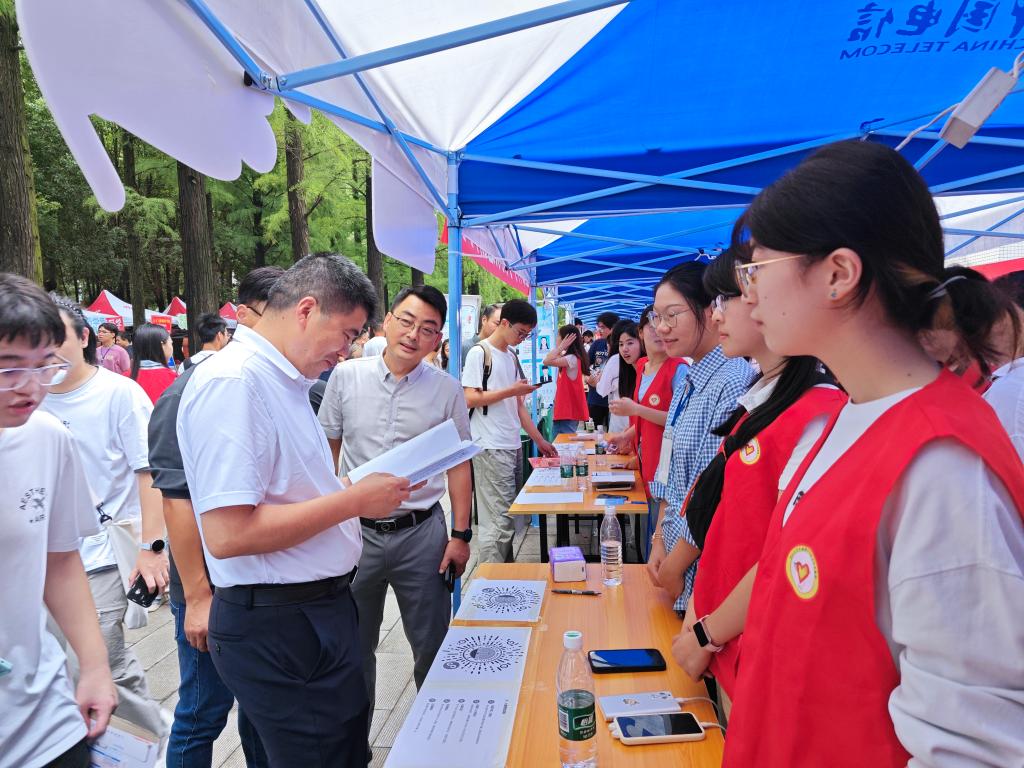 在迎新如火如荼地进行过程之中,学校和学院的领导也顶着雨水莅临了迎新现场。各位领导不仅关心慰问了迎新志愿者,为他们的工作加油鼓劲,也与各位新生及家长亲切交流,详细询问他们的报到情况和住宿安排,并希望新生们能尽快适应大学生活,生命科学还有一番广袤的天地等待着他们去探索。