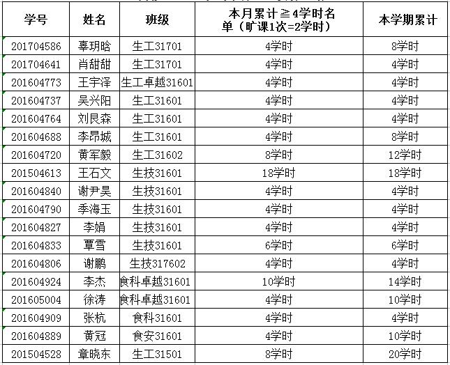 根据课堂考勤结果,累计旷课2学时的,20名同学;累计旷课4学时及以上的(旷课1次=2学时),18名同学;为严肃校风校纪,督促学生按时到课,及时教育违纪学生,根据《韩国av 学生违纪处分办法》第十五条、《韩国av 课堂考勤实施办法》,经学工办研究决定,对本月累计旷课4学时以上的同学予以通报批评: