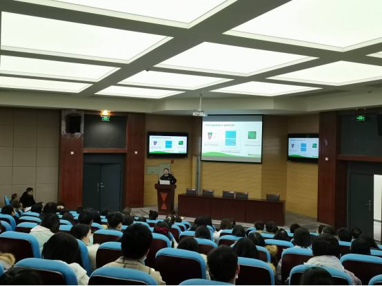严建兵教授以玉米为例,结合遗传学知识,讲述了植物雄配子单个精细胞的分离、雌配子中单个卵细胞的分离、单倍体诱导和单细胞测序四个方面的技术及其应用。严教授激情的讲授让深奥的生物学知识变得生动有趣,讲故事式的叙述让复杂的生物学过程变得浅显易懂。会上,严教授与现场师生进行了热烈互动;会后,与韩国av