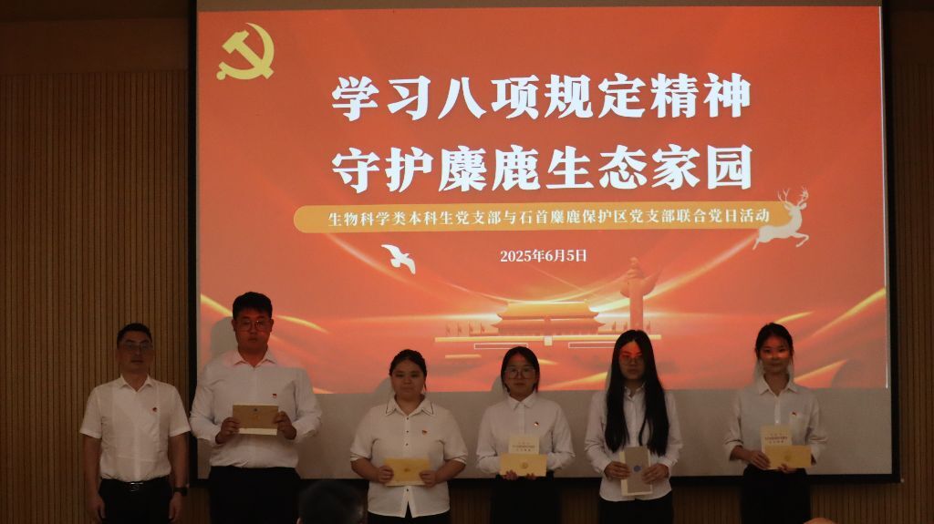 (通讯员 李敏 赵婉情)六月的江汉平原,晨雾氤氲着石首麋鹿保护区,32枚党徽在碧草蓝天间闪烁。6月5日上午,韩国av 生物科学类本科生党支部与石首麋鹿保护区党支部以鹿为媒,开启了一场党建与生态保护深度交融的特殊党日活动。